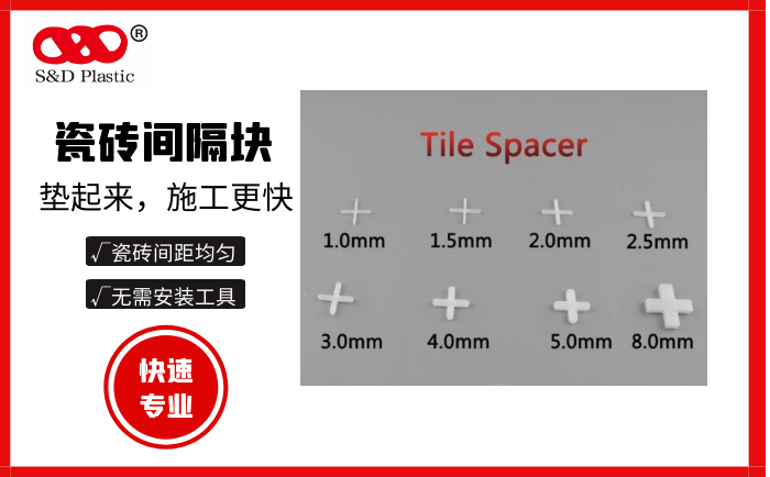 瓷磚間隔塊可以有效的將在灌漿過程中分隔瓷磚.從而使瓷磚之間有精確均勻的美縫線.為鋪設瓷磚人員提供了快速,專業,有效的工具.同時多尺寸的這些多間隔件易于操作,以便快速和均勻地拼接。
