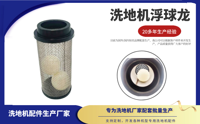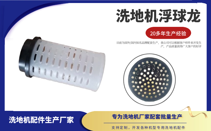 產品說明:浮球籠耐酸堿,浮球籠與彎頭,方形墊片為配套產品。應用在洗地機的水箱內,起到測量水位的作用。? ? ? ? ? ? ? ? ? ? ? ? ? ? ? ? ? ? ? ? ? ? ? ? ? ? ? ? ? ? ? ? ? ? ? ? ? ? ? ? ? ? ? ? ? ? ? ? ? ? 洗地機是現代普遍的清潔設備。我們經過數年時間的技術開發,結合國內外洗地機的具體情況,開發出各種機型專用配件,使您的清潔設備保持優異性能。目前為國外/國內知名品牌配套生產,我公司生產的洗地機吸水膠條,具有耐磨、耐油、耐高低溫、抗老化、耐腐蝕、耐酸堿等優點。憑借多年洗地機配件的生產經驗,我公司可以根據客戶樣件來開發生產,歡迎廣大洗地機生產商來電咨詢。